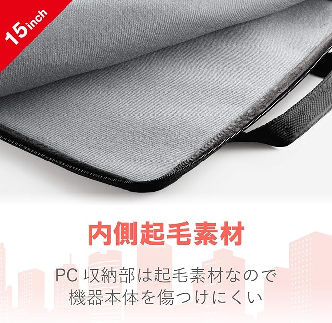 ■ バッグ内部には、出し入れ時にパソコン本体を傷つけにくい起毛素材を採用しています。