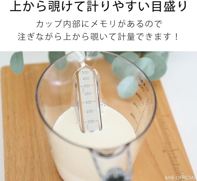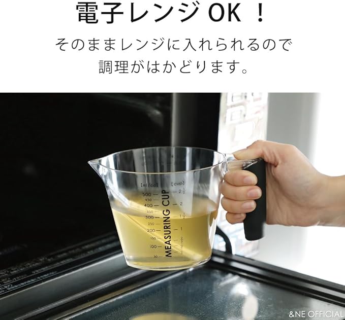 アンドエヌイー(&NE) 計量カップ 500ml nikii クリア 大 日本製 耐熱 電子レンジ対応 食洗機対応 上から見える お米 3合 小麦粉 250g 水 熱湯 おしゃれ NIM-168