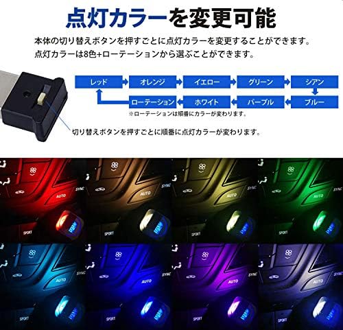 prendre USB LED ライト 8色 RGB 光センサー イルミネーション 車用 車内 明るさ調整 USB給電 簡単取付 小型 コンパクト PR-UL001