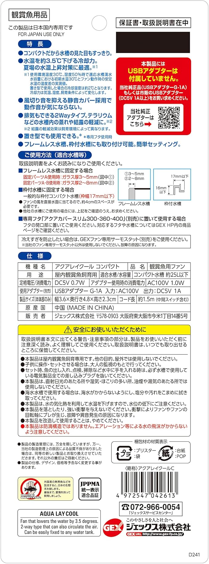 ジェックス GEX アクアレイクール コンパクト 観賞魚水槽用ファン 冷却 アクアリウム 簡単設置 水温上昇対策 コンパクト水槽用 水容量約25L以下