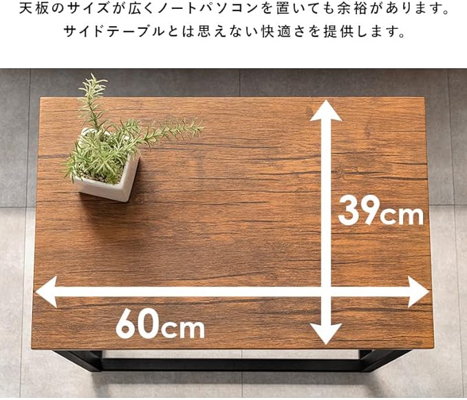 萩原(Hagihara) サイドテーブル 机 ナイトテーブル ソファサイドテーブル デスク PC リモートワーク 耐水 軽量 木目調 インダストリアル 幅60 奥行39 高さ54.5 ブラウン LST-4662BR