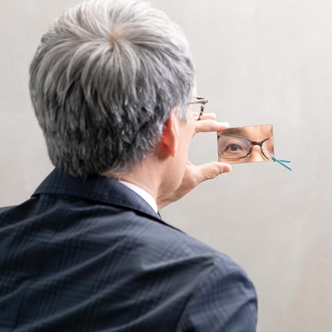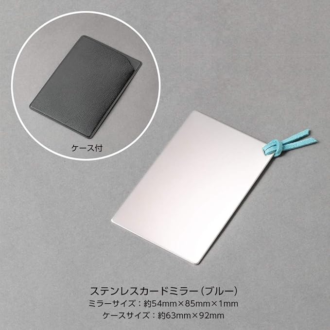 HORIUCHI MIRROR 安心・安全 割れない鏡 ステンレスカードミラー・ブルー紐付き 就職祝い 贈り物