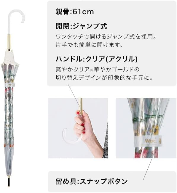 Wpc. 雨傘 [ビニール傘] 刺繍風アンブレラ ピンク 長傘 61cm 長く使える 撥水 レディース ジャンプ傘 大きい 花柄 フラワー インスタ 映え フォトジェニック 透明 丈夫 おしゃれ 可愛い 女性 通勤 通学 PT-EM01-001