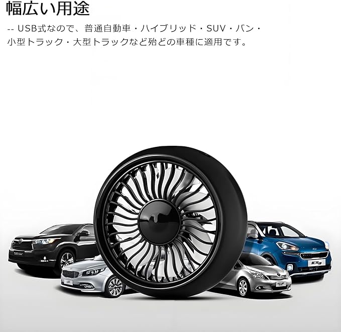 1.「 最新版! 」車内は空気が悪い時、クーラーの時は車内隅々まで風を送り込めます。夏場のドライブや車中泊などにもフィットする車載扇風機です。
