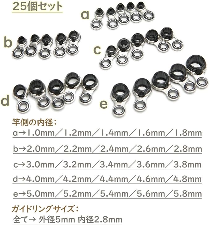 ロッドガイド ステンレス 釣り竿 1.0mm~5.8mm 合計25点セット