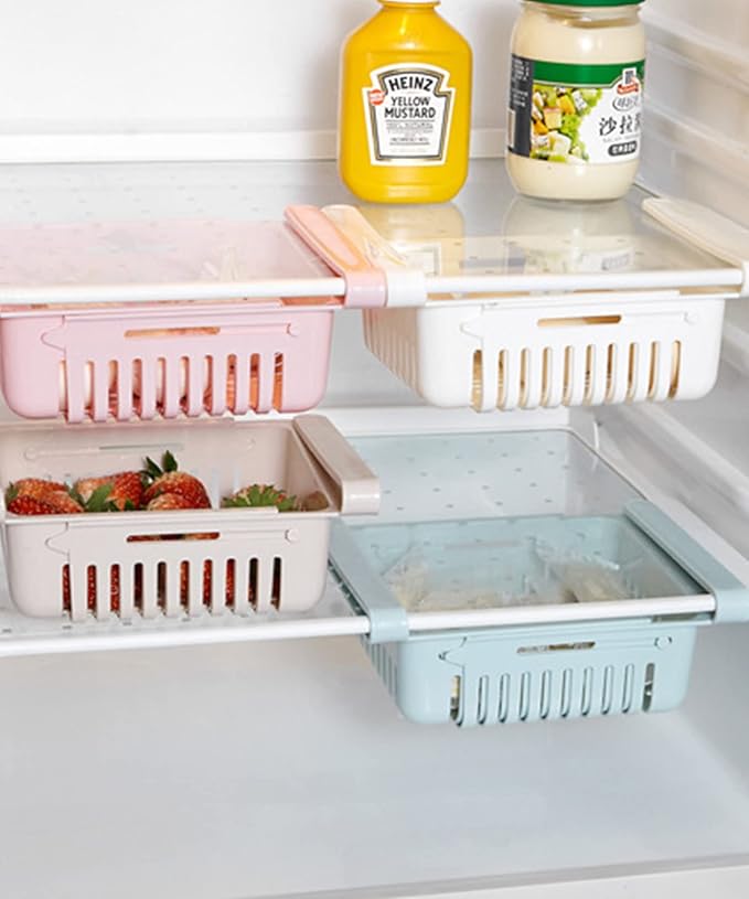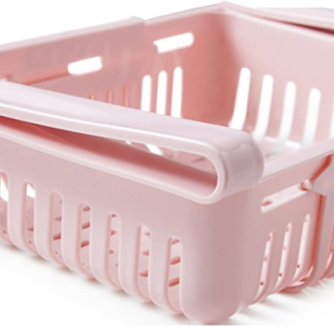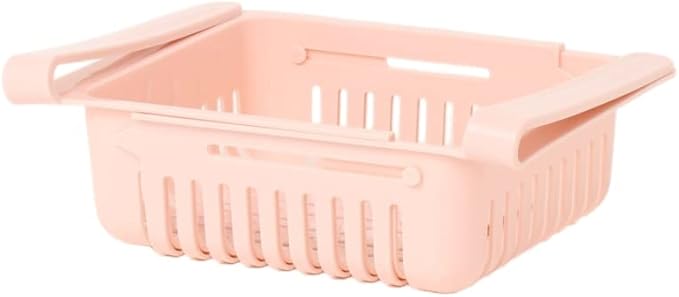 冷蔵庫 収納ラック 引き出し トレイ 吊り下げ 収納 冷蔵庫トレー 整理 整頓 冷蔵庫収納 伸縮式 冷蔵庫収納 冷蔵庫 ラック 左右に引っ張ると スペースが拡大 (ピンク)