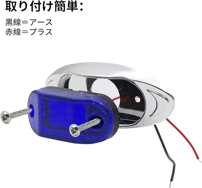 ★【仕様】素材:プラスチック+LED 動作電圧:DC12V24V 本体色:メッキシルバー レンズカラー:ブルー 発光色:ブルー 本体サイズ:9.8*4*2CM 装着ネジ径:M3 役割:トラック サイドマーカー LED