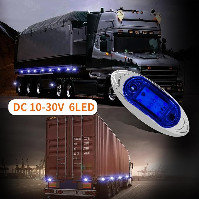 ★【Aoling トラック サイドマーカー、サイドマーカー LED 12V 24V 青、サイドマーカーランプ 12V、マーカーランプ 24V、トラック サイドランプ、LED サイドマーカー 路肩灯、メッキベース 4個】
