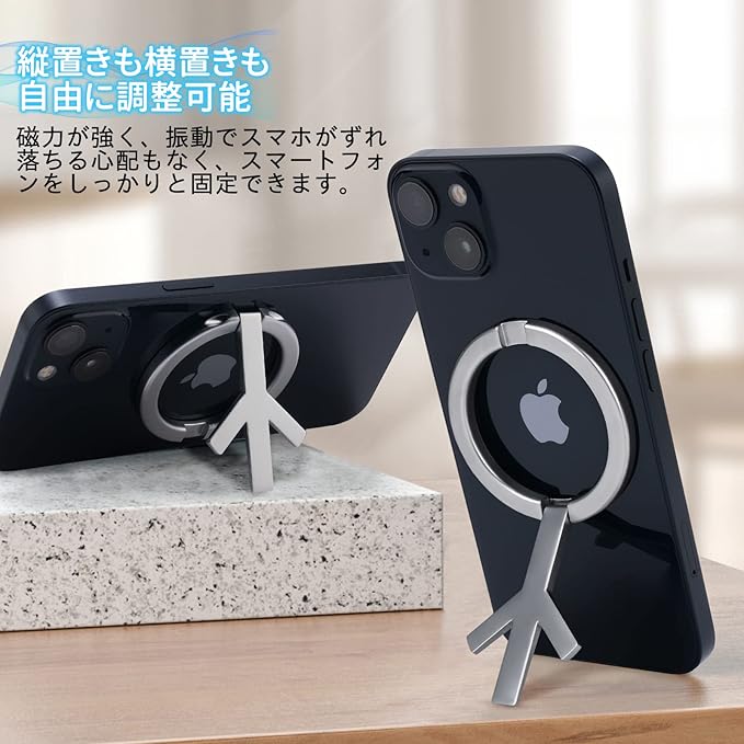 【iPhone Android幅広い用途に対応】あらゆる携帯電話に対応するマグネットリング付き。iPhone14 12 13/iPhone 12 13pro/iPhone 12 13pro max/ iPhone 12 13miniとMagSafe iPhoneケース対応機種に適しています。付属の磁気マグネットリングをスマホ/スマホケースに貼り付けると 、他のモデルのスマホにも便利に使用できます。