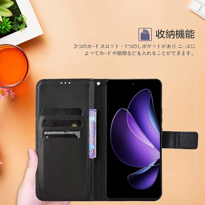 OPPO Reno13 A 用 ケース 手帳型 YAJOJO 財布型カバー スマホケース カード収納 スタンド機能 マグネット開閉 耐衝撃 レンズ保護 合皮レザーー + TPUケース 革の質感 画面レンズ保護 落下防止 全面保護 指紋防止 (黒)