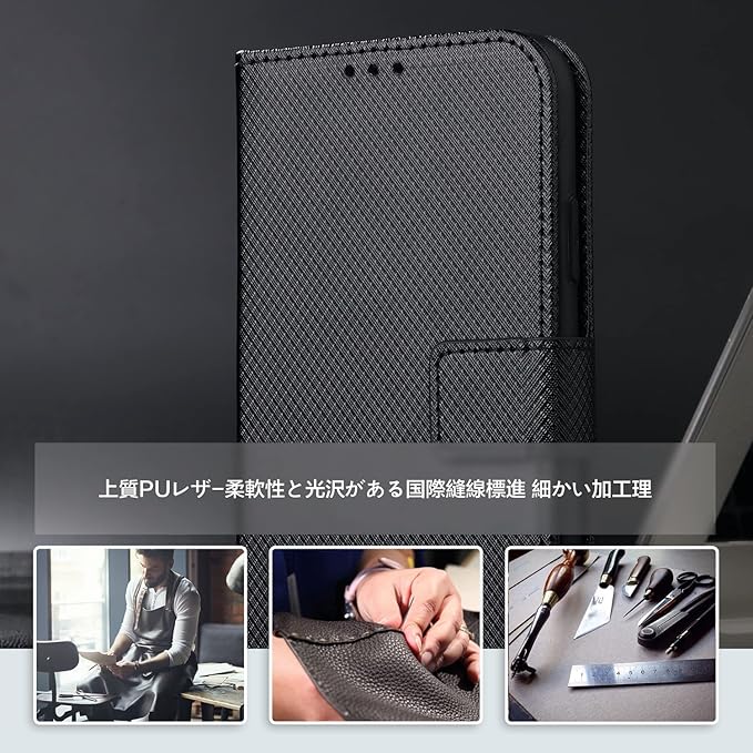 【上質な素材】ラップトップタイプのケースは、上質なPU合成皮革のシェル+ソフトなTPUのインナーシェルで構成されており、手触りがよく、スマートフォンをあらゆる面で保護します。