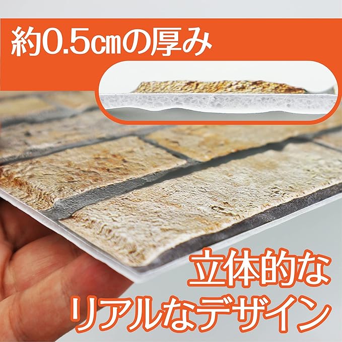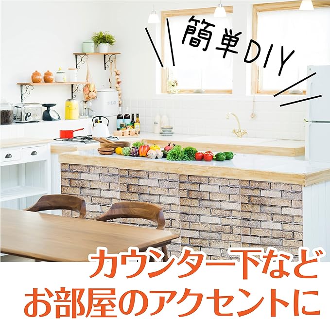 女性や初心者の方でも簡単に貼ることができるシールタイプで、何度も張って剝がせます。本物のアンティークレンガのようなデザインがとってもおしゃれで、お部屋の印象が一瞬で変えられます。