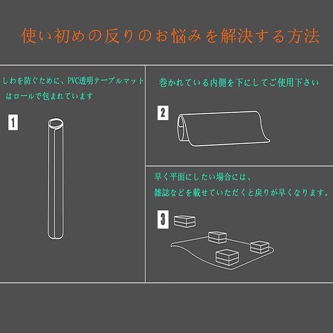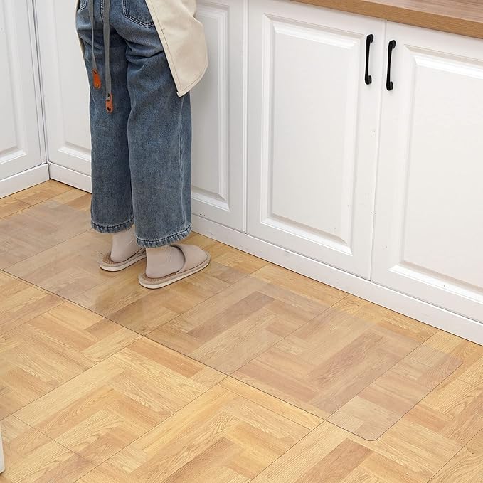 【半透明 PVC素材の キッチンマットです】45x120cm,厚さ1.5mm。使いたい場所に合わせてサイズを自由にカットし、ダイニング、オフィスデスク、床のキズ防止用に役に立ちます