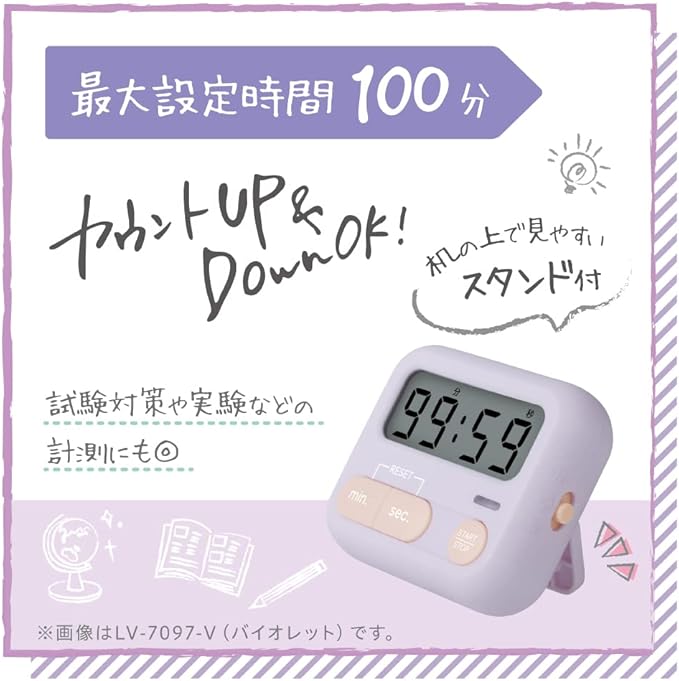 カウントUP/DOWN機能付き 試験対策や実験の計測にも使えます。