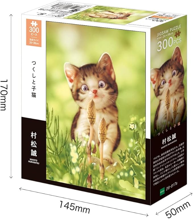 エポック社 300ピース ジグソーパズル イラスト/アート 村松誠 つくしと子猫 (26 38cm) 28-817s のり付き ヘラ付き 点数券付き EPOCH