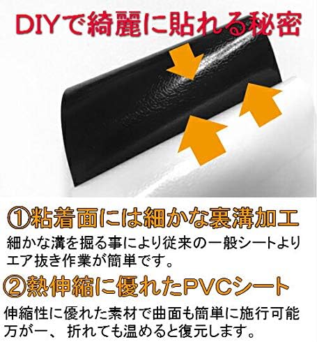 耐熱、耐水仕様ですので自動車・バイクなどの内装、外装問わず施工できます! また、ヒートガン、ドライヤーで温めると伸びるので曲面も簡単施工可能 粘着面にはエア抜き用の細かな溝が加工されておりエア噛みしにくく、施工が簡単です。 跡残りが少ない粘着タイプですので時間が経っても剥がすのも簡単です。 少々失敗しても貼りなおしも可能です。少し粘着が弱めですので、施行完了時に全体的にしっかり温めて粘着力を向上、形を保持すると角剥がれや浮きが発生しにくくなります。 記載している事項に関しましてクレームの受付は出来かねます。