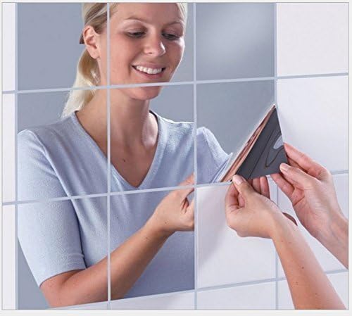 【16枚セット】壁貼りシール 鏡シール インテリア鏡貼 浴室 化粧 壁 装飾ミラー 安全 割れない 折れない 鏡効果 おしゃれ 薄型 空間節約 四角形 15 x15cm 1mm (1mm, 16)
