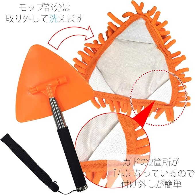 コモライフ ホコリキャッチャー 伸縮モップ 三角 ホコリ 床 伸縮約26~76cm マイクロファイバー トイレ 掃除 ハンディモップ