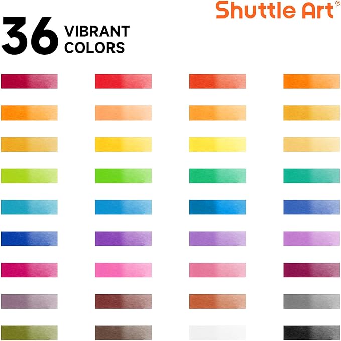 Shuttle Art 固形水彩 絵の具 36色セット 固体水彩 透明 鮮やか パレット プチカラー ブラシと画用紙付き 発色 着色がいい 溶けやすい 速乾 洗える 耐久性 スケッチ 写生 旅行 便利 塗り絵 学習用画材 ソリッド ウォーターカラー 初心者 学生 子供 大人 学校 美術教室 入学祝い プレゼント