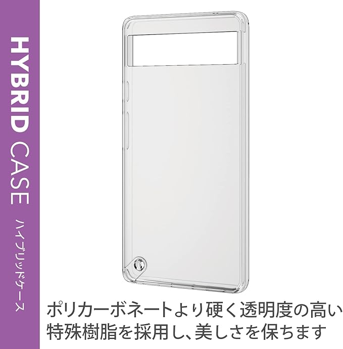 ●側面に弾力性のあるTPU素材を、背面に強じんで透明度の高いポリカーボネート素材を使用した、スリムなスタイルのGoogle Pixel 6a用ハイブリッドケースです。●側面は強じんな耐久性としなやかな弾力性を合わせ持ったTPU(熱可塑性ポリウレタン)素材のフレームが保護します。●背面は丈夫なポリカーボネート製のカバーが保護します。●四つ角にエアークッションを設け、本体を衝撃から守ります。●液晶画面および背面カメラや背面の傷付きを防ぐガード設計です。●ケースを装着したままで液晶画面の確認、本体の操作、充電・通信ケーブルの接続が可能です。●ストラップの取り付けができるストラップホールが付いています。●※本製品にストラップは付属していません。