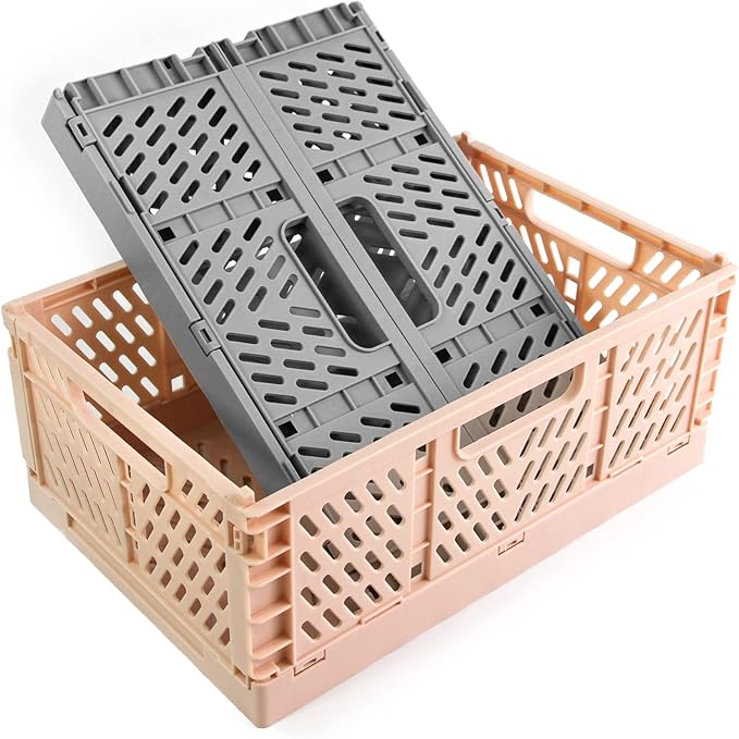 コンテナ 折りたたみ オリコンセット 収納 ボックス 収納ケース バスケット フォールディング かご ハンディ コンテナ フォールディング(グレー+ピンク)