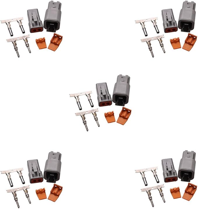 防水カプラー2極 5個セット 2ピン 16-14AWG(1.25-2sq) DTコネクタ オス/メス 仕事率300W以下用 密閉防水 lightronic