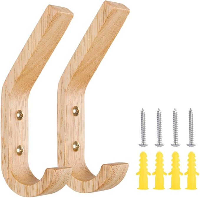 壁掛けフック 木製 壁掛けハンガー 北欧 ウォールナット 石膏ボード壁 コート掛け 両用フック J字フック 玄関用(4個セット)