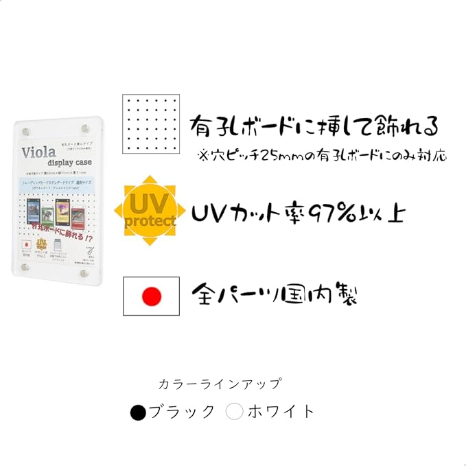 【Viola display case< 有孔ボード挿入タイプ> 】UVカット 全パーツ国内製 アクリルケース 保管ケース トレーディングカード (ホワイト, スタンダード)