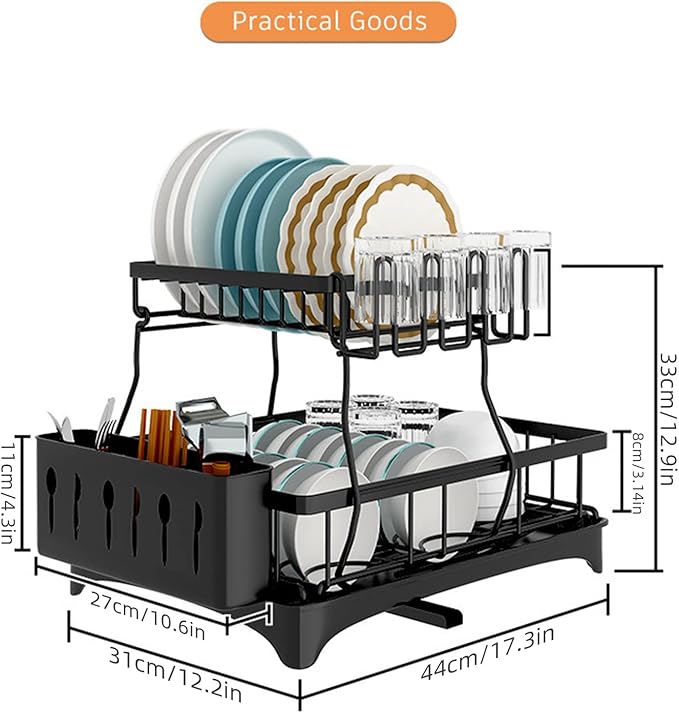 食器水切りラック 2段 水切りかご、ドリップトレー付き大容量防錆ドレンラック 食器収納 皿乾燥水切り棚 キッチンラック 収納棚