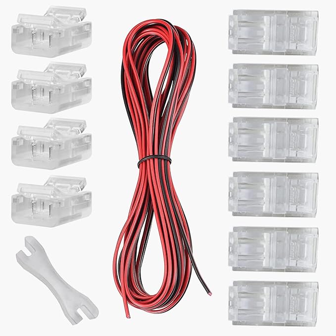 GTIWUNG 3528 2835 2ピン無はんだLEDストリップ-ストリップコネクタキット、10メートルの延長ケーブル、2ピンLEDストリップライトコネクタ、ギャップレスコネクタ、8mmLEDストリップ-ワイヤクイック接続用 屋内および屋外での使用