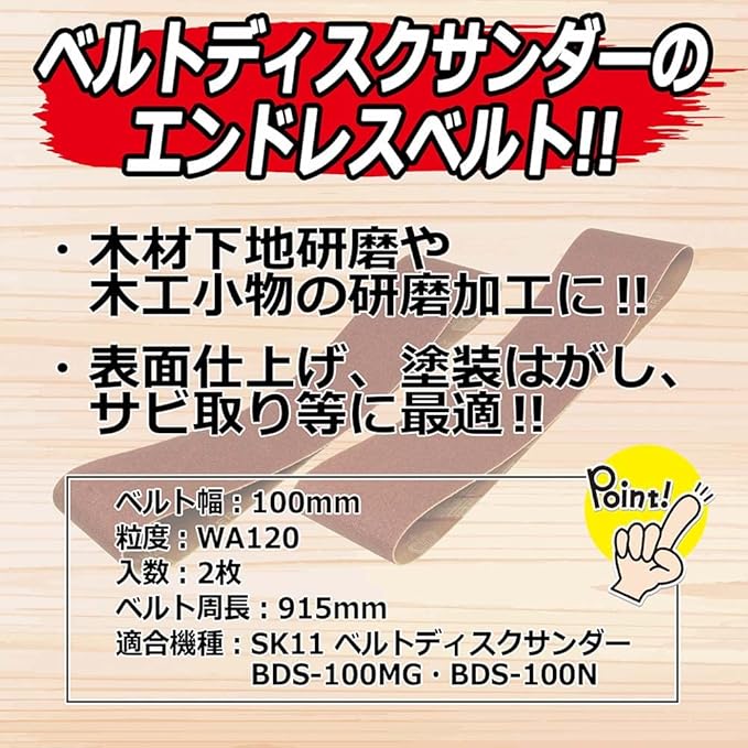 SK11(エスケー11) ベルトサンダー用 エンドレスベルト 2枚入り WA#120 100 915mm BE-42