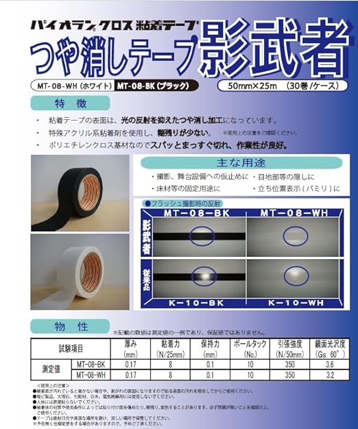 ダイヤテックス パイオラン つや消しテープ 影武者 ホワイト 50mm 25m MT-08-WH 反射抑制