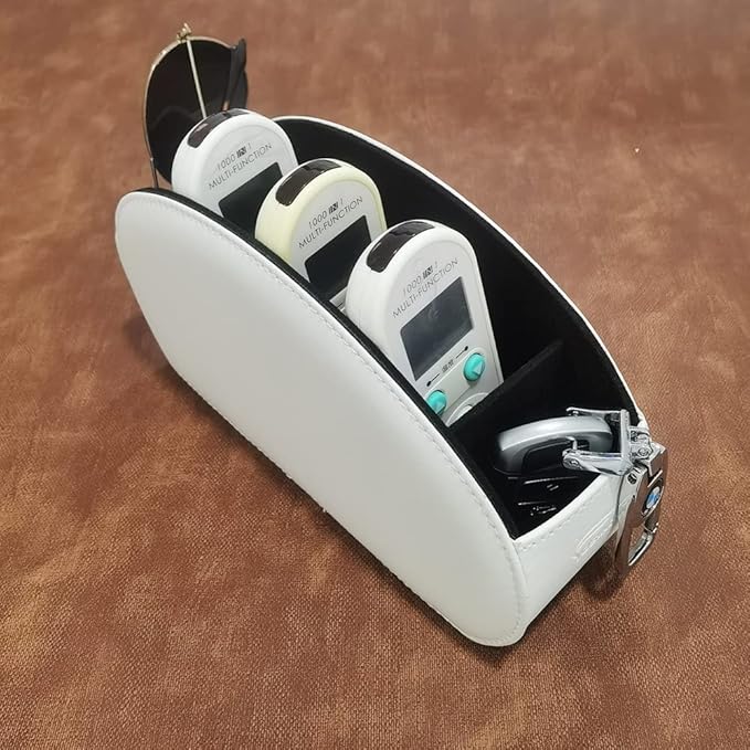 Awesomes リモコンラック PUレザーリモコンホルダー 卓上リモコン収納ボックス 卓上小物収納ケース PUレザー製オシャレ収納ボックス(027ホワイト)