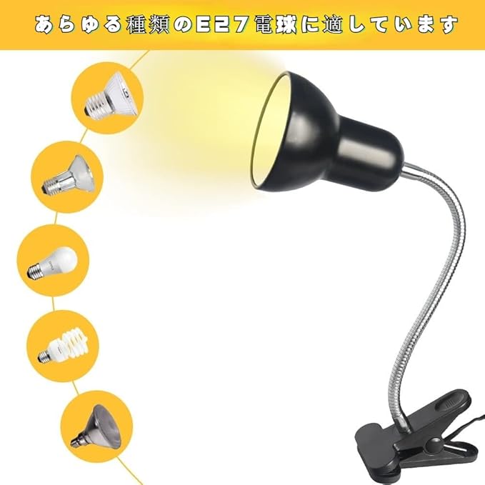 360度調整可能な爬虫類ライト:OJLLK UVAライトステンレス製の本体で360 回転可能に設計され、好きな角度に曲げることができます。光をちゃんとペットにお届きします。