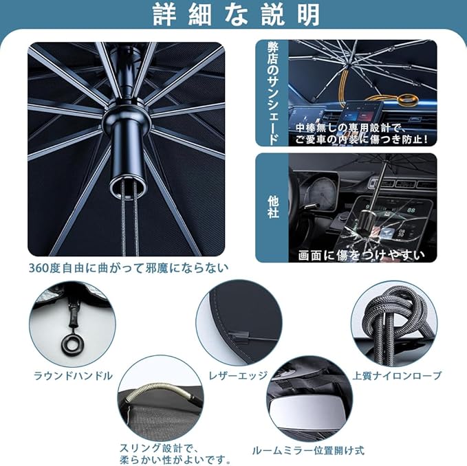 ホンダ CR-V専用 サンシェード 日よけ フロントサンシェード 折りたたみ傘仕様 フロントガラスカバー 収納便利 遮光 遮熱 プライバシー保護 UV 紫外線カット 暑さ対策 収納ポーチ付き 1P【シルバー】 CRV01