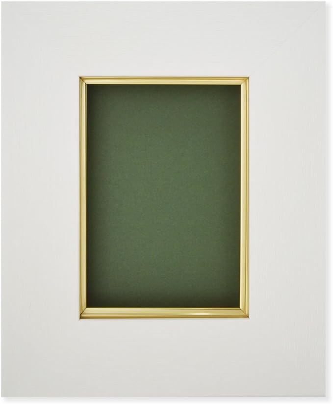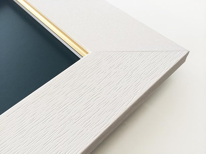 フレームはホワイト(白の木地調)色の幅広の樹脂製で、内側に面金ライナーを入れ、表面部分にはアクリル板を使用。