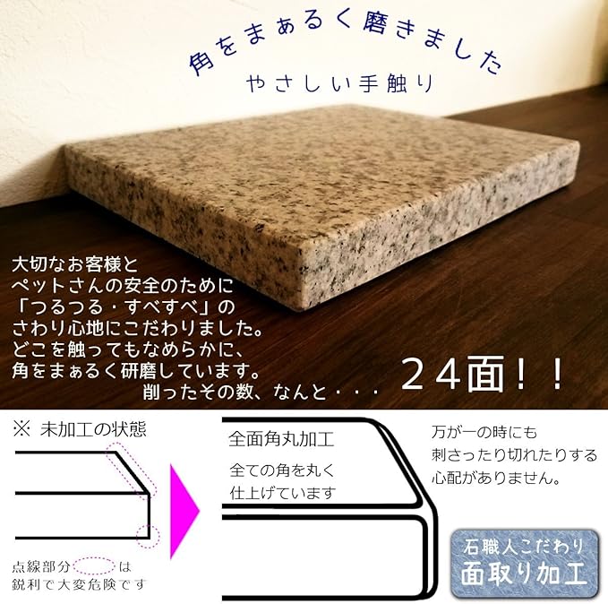 大理石に比べはるかに耐久性の高い御影石から加工。ハムスター・うさぎさん・ハリネズミ等小動物の熱中症対策に最適サイズ。