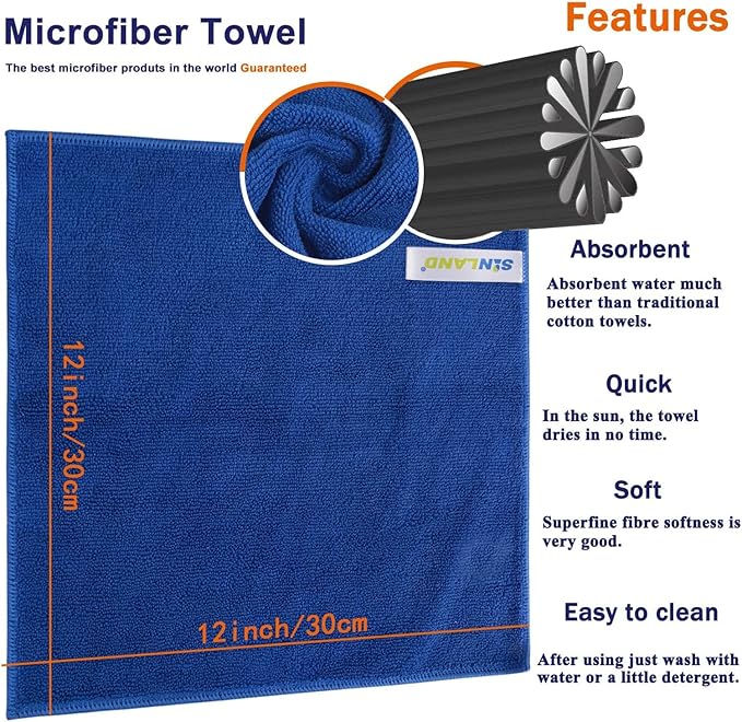 SINLAND マイクロファイバー クリーニングクロス お掃除タオル 台拭き 洗車 吸水 速乾 ふきん12枚入 ブルー