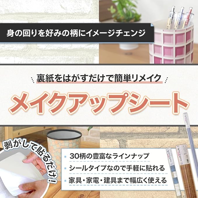 アサヒペン メイクアップシート 45cm 2m S2-29 リメイクシート シールタイプ 装飾シート 壁紙シール リメイクシール 模様替え 厚手 貼りやすい