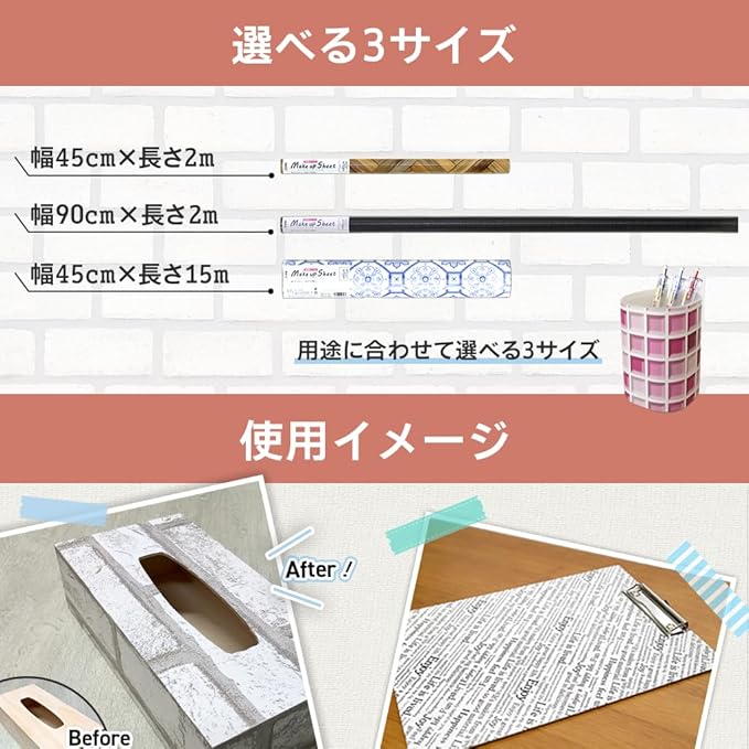 粘着剤付きですので、裏紙をはがすだけで手軽に貼れ、お部屋の模様替えができます。