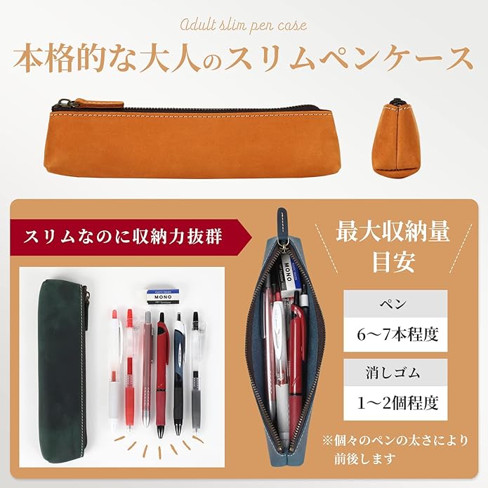 [ 亀登鞄製作所 ] ぺンケース 筆箱 スリム 革 大容量 シンプル 大人 (牛革の最表面のみで作られたペンケース) おしゃれ レザーペンケース メンズ 革筆箱 本革 軽量 ビジネス | ryouhinshop