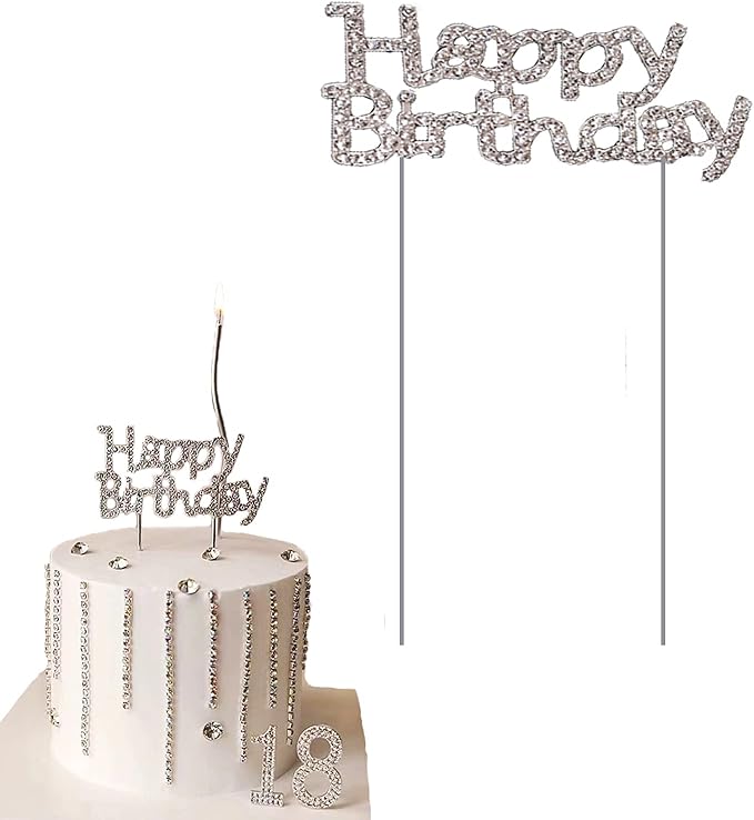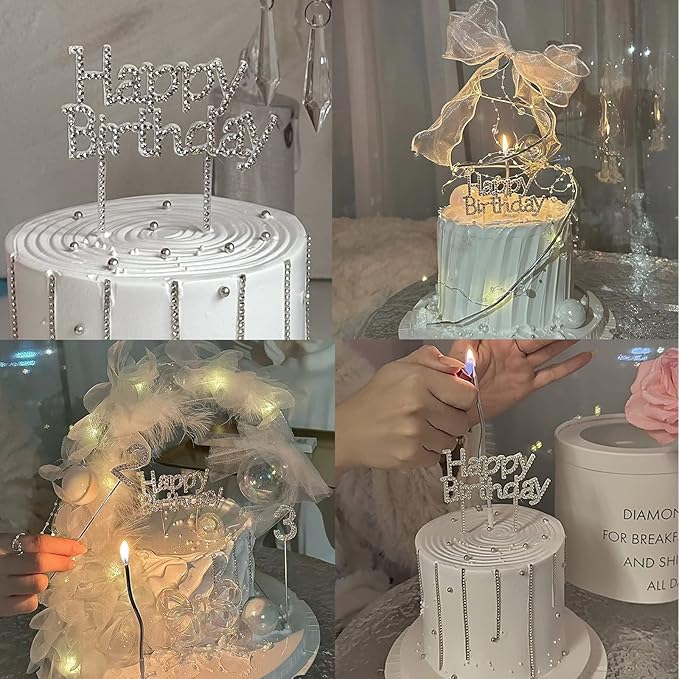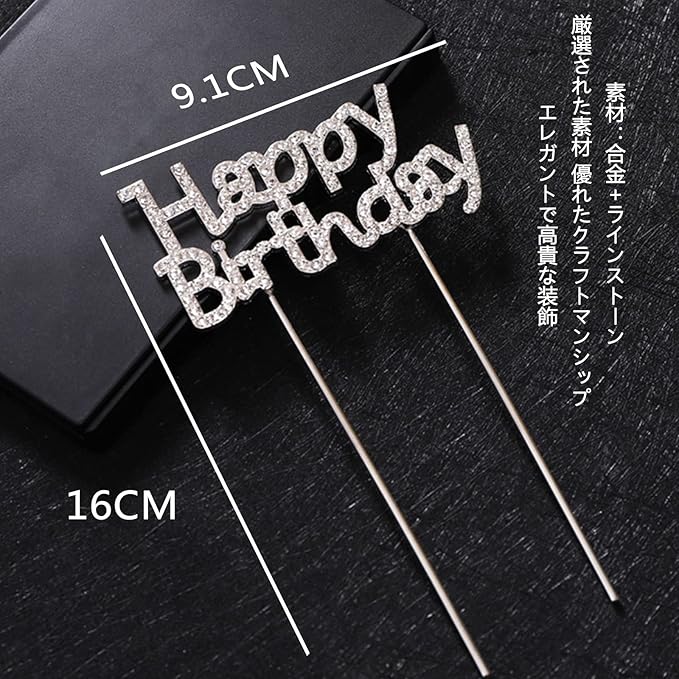 Happy Birthday ケーキトッパー 誕生日 ケーキ挿入カード ウォータドリル 誕生日ケーキ ハッピーバースデー 飾り付け ケーキ飾り ケーキ専用 デコレーション ケーキ お誕生日 記念写真 お祝い 記念撮影 かわいい 誕生日パーティー シルバー
