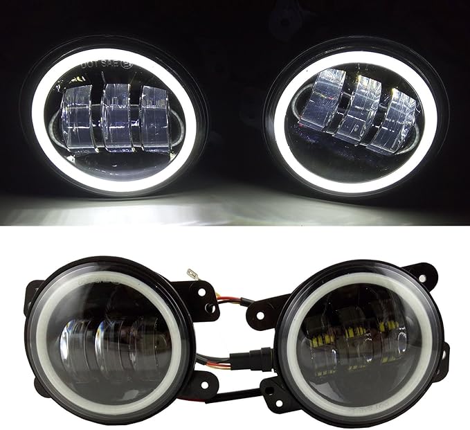 最新のファンタスティックデザイン4インチLEDフォグライト、素早く簡単なインストール - プラグ&プレイ。 DRL:6000Kホワイトハローリング、それはうまく動作し、霧の中の最高の運転経験を提供します。
