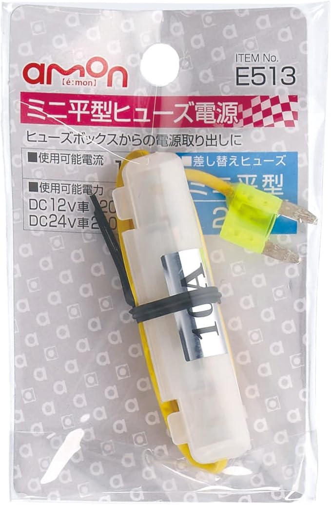 エーモン(amon) ミニ平型ヒューズ電源 DC12V・120W/DC24V・240W 20Aヒューズ差替用 ヒューズボックスから電源が取り出せる E513