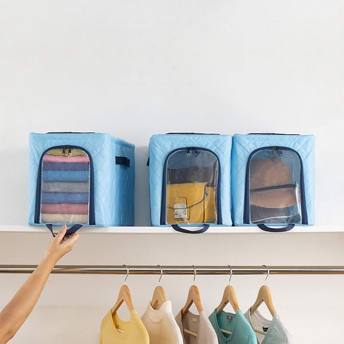 アストロ 収納ケース ライトブルー Sサイズ 約W25 D40 H28cm ワイヤー入り 不織布 吸湿 除湿 防ダニ 積み重ねできる 620-90