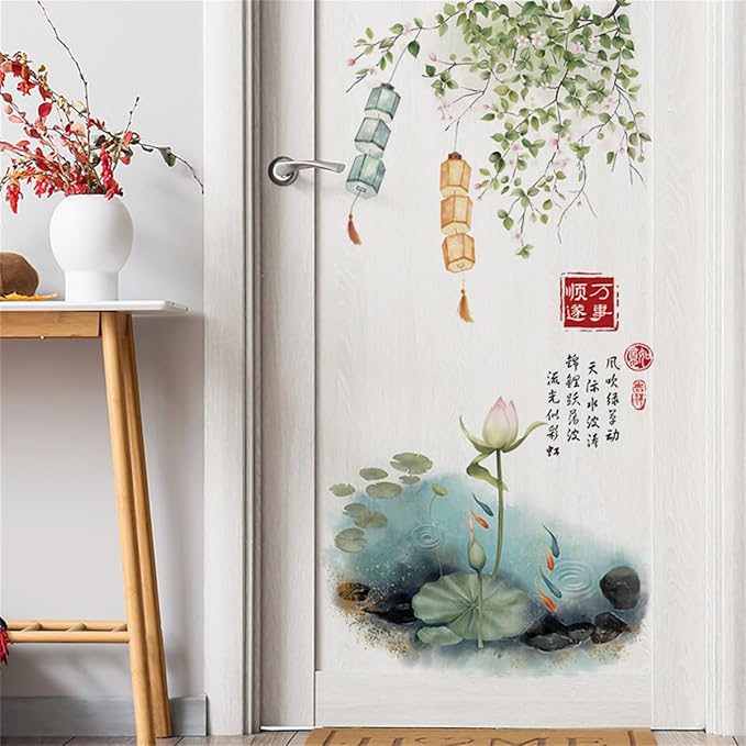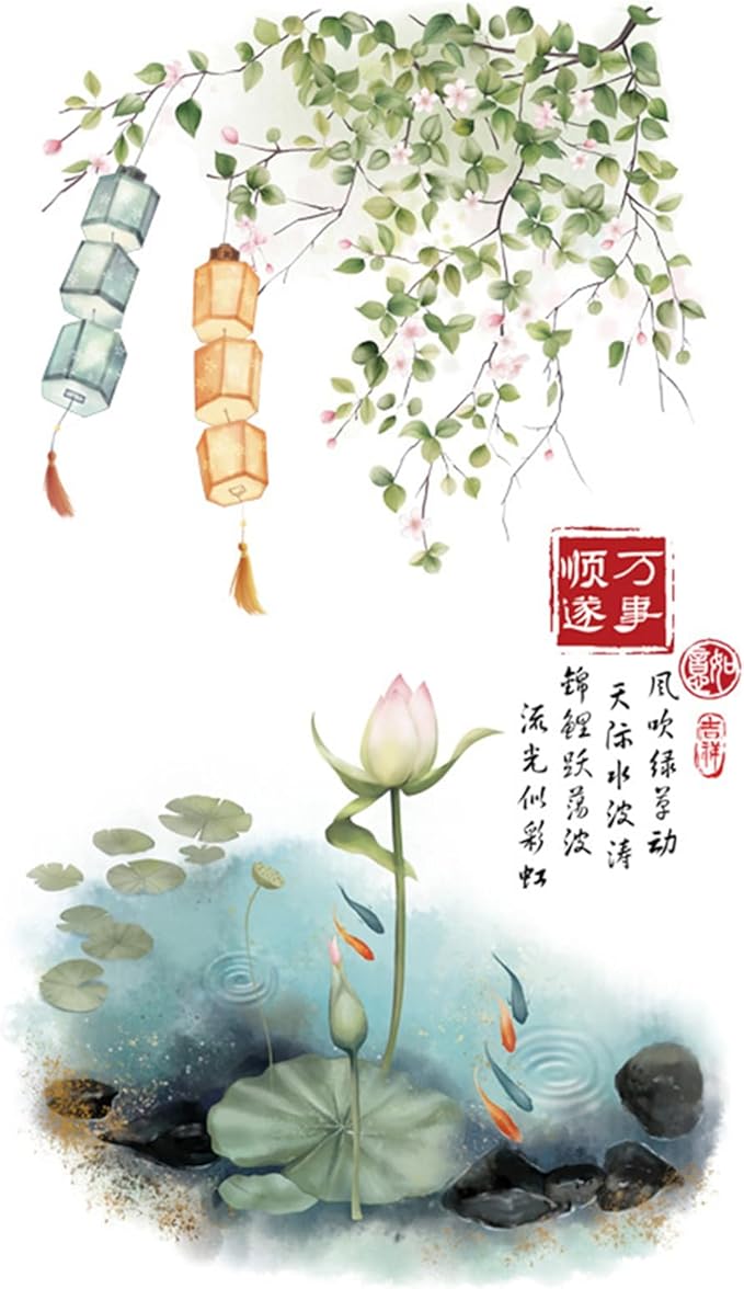 HOTIYOK ウォールステッカー 緑 中国スタイル 天井吊り植物 ランタン ウォールシール 蓮のつる diy 壁紙 壁 シール 剥がせる 男の子 女の子 寝室 子供 部屋 ウォール ペーパー アート 保育園 はがせる wall sticker 飾り 御洒落 ウォール デコ
