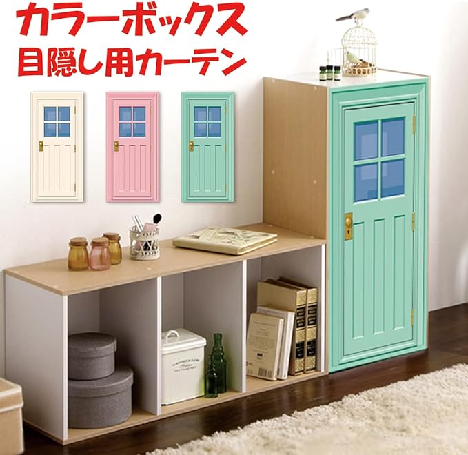 next.desing ミニカーテン カラーボックス 棚 ラック 扉 ドア ダミー フェイク ミニチュア かわいい 裏 隠す インテリア 目隠し 布 おしゃれ カバー 縦置き カーテン 収納 (デザイン3)