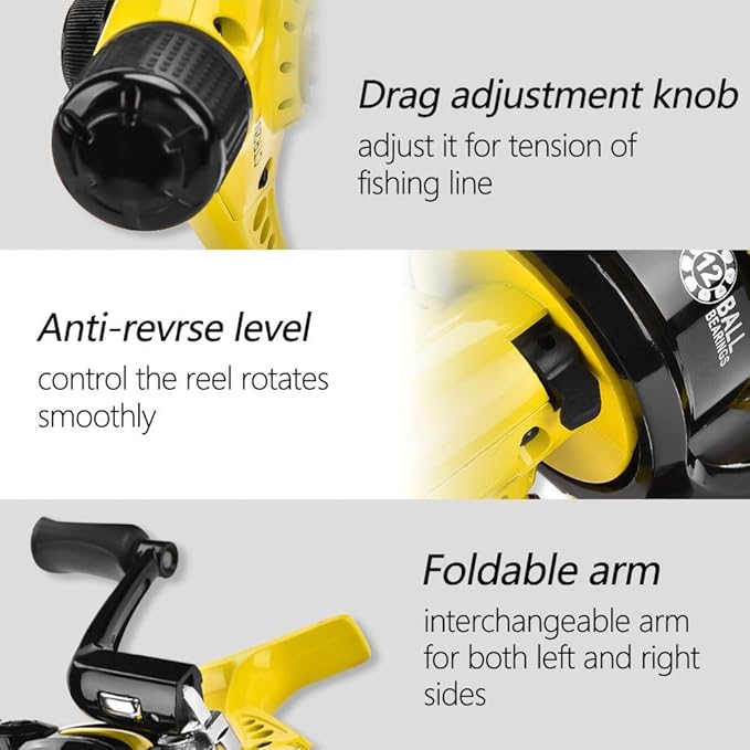 【両手通用】右手と左手の人々に適した左右両側にハンドルを装備する、大きな抗力で快適、実用的なデザイン、使いやすいスピニングリール。