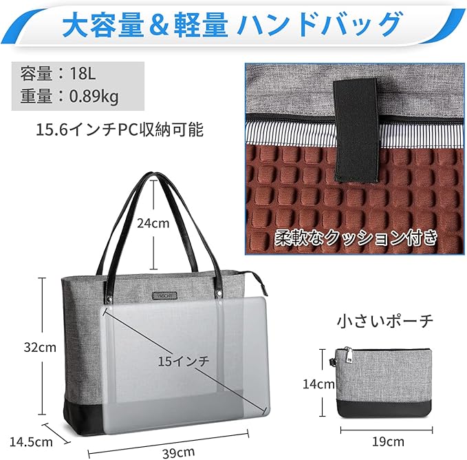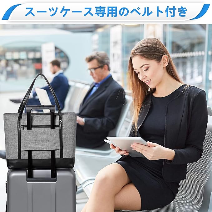 VASCHY 大容量 トートバッグ レディース ビジネスバッグ 15.6インチPCバッグ A4対応 ハンドバッグ 買い物バッグ 通勤 出張 肩掛け 2点セット スーツケースベルト付き | ryouhinshop