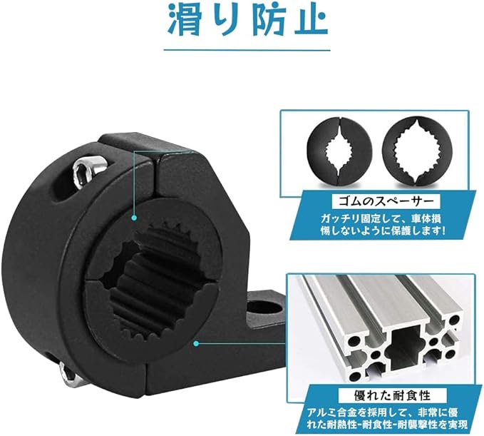 【商品仕様】材質:アルミ合金 サイズ:パイプ径15-31mm対応 取り付け簡単:穴開け加工せずに、取り付けできます!